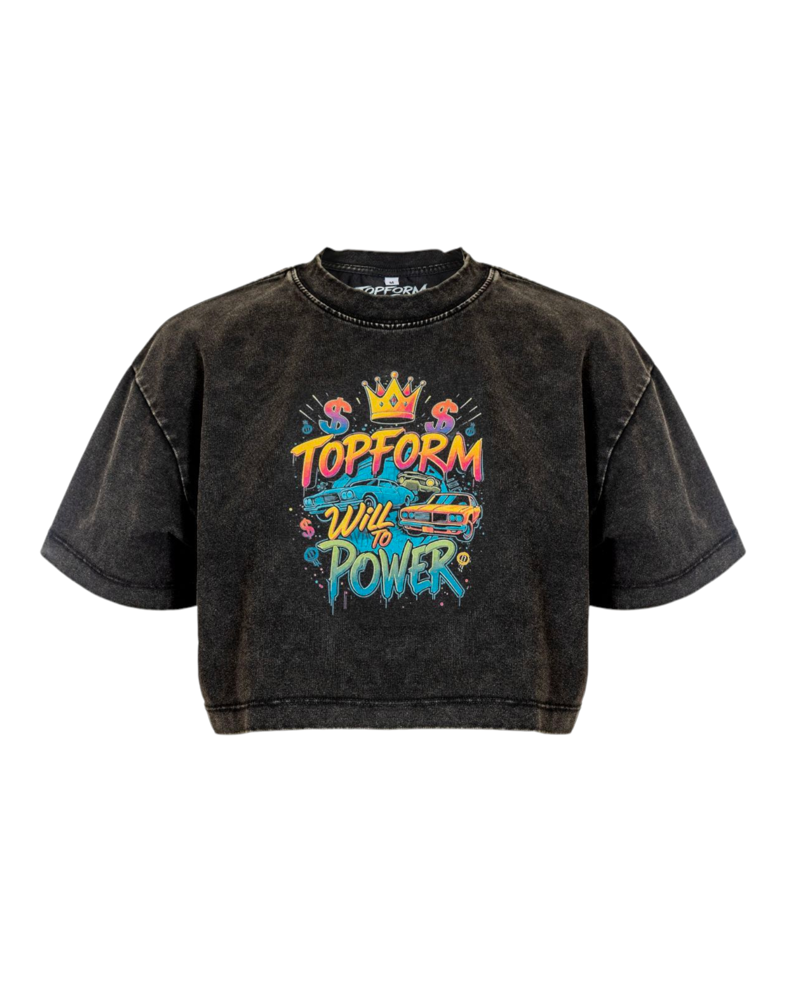 Step into your season of self-made. The Topform Boss Babe Crop is a statement piece for the bold — those who turn pressure into power and hustle into lifestyle. With a street-art style "Will to Power" graphic front and centre, this tee doesn't whisper ambition — it screams it.